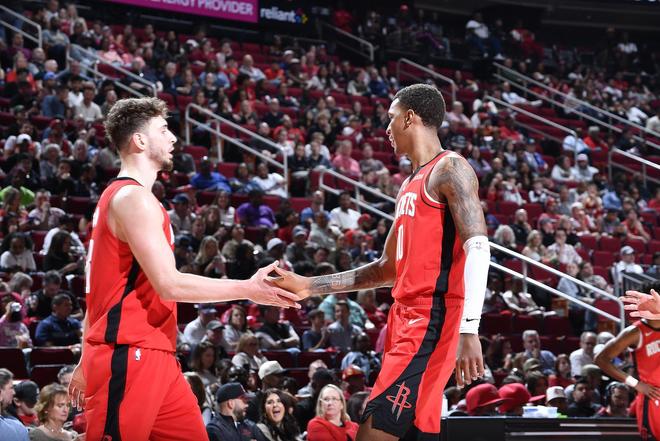 当申京被换防出去,火箭内线还有一位中锋,那么火箭的内线防守,后场篮板保护,以及护框都有一定的保障。